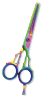 Professional Thinning Scissor. One Blade Teeth and One Blade Razor. Multicolor coating.