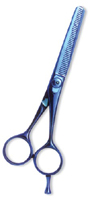 Professional Thinning Scissor. One Blade Teeth and One Blade Razor. Blue color coating.